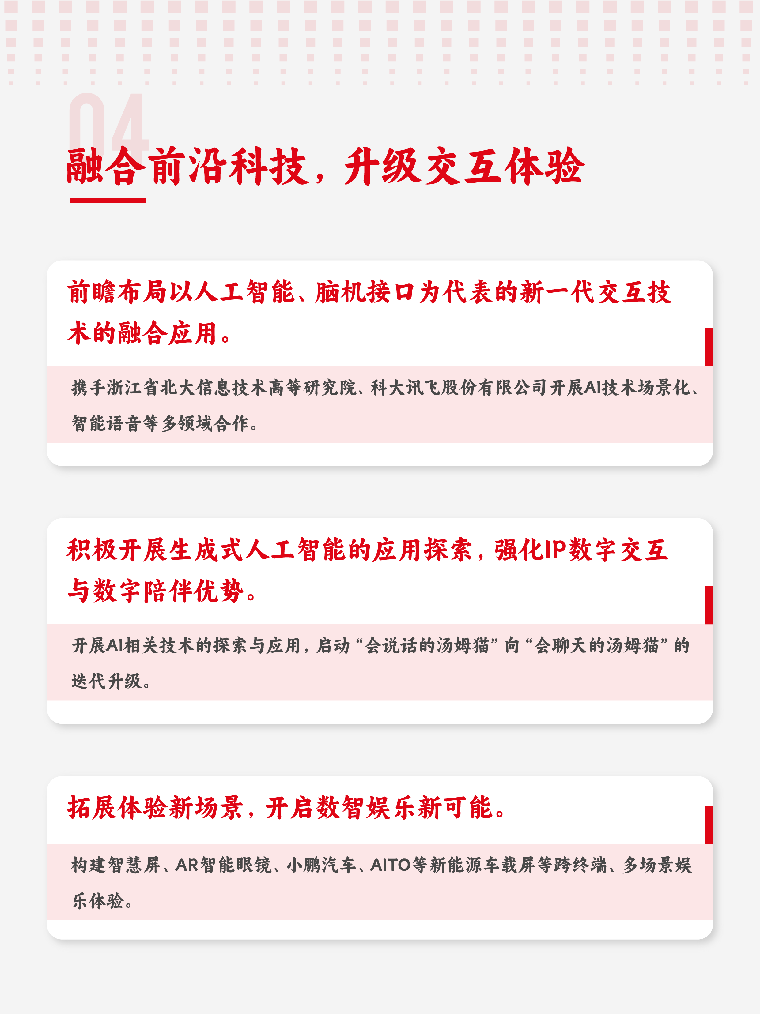 ? 深化IP數(shù)字交互與情感陪伴特征,融合人工智能科技,拓展新型交互體驗。