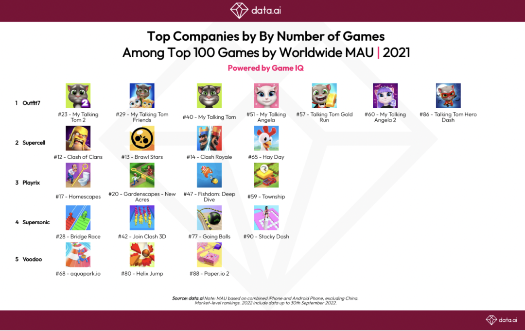 近日,數據平臺data.ai報告顯示,2013-2022年,公司旗下“會說話的湯姆貓家族”IP系列移動應用產品下載量已累計超百億次,連續十年穩居全球游戲IP下載量排行榜首位。該報告通過對全球下載量、月活躍用戶、產品數量等進行綜合維度的評估,指出“會說話的湯姆貓家族”是過去十年中最成功的手機游戲IP。